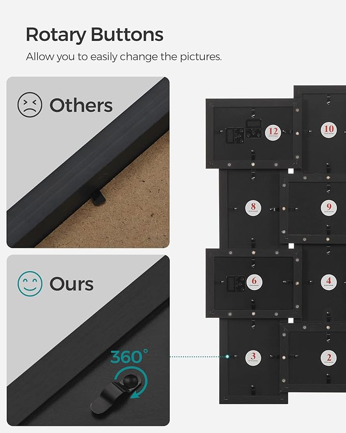 • [Easy Photo Replacement] Featuring turn buttons on the back, this photo frame collage makes updating your displayed memories effortless, allowing for simple photo swaps whenever you desire a fresh look