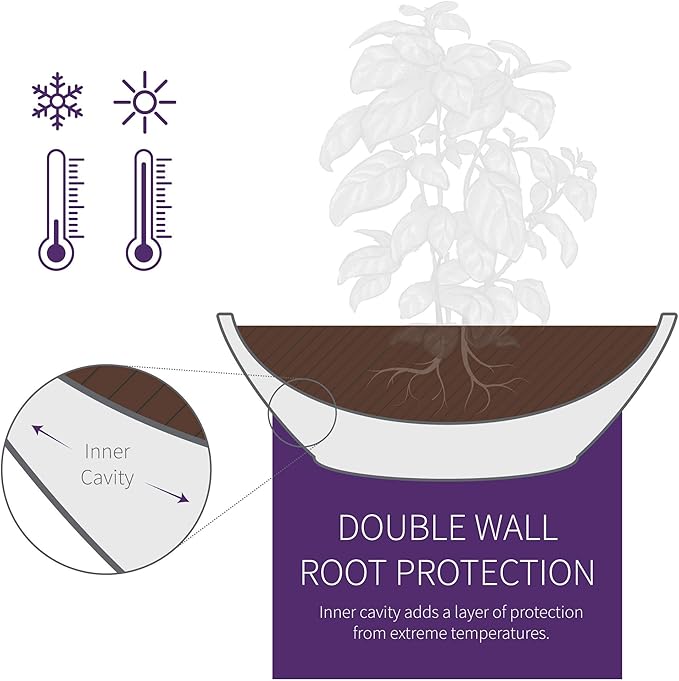 • Double Wall: A thick, durable double wall effectively protects plants' roots from extreme temperatures. Inner dimensions: 13.7" x 14.5” W x 5.9" H.