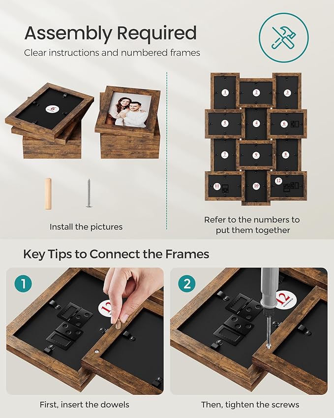 • [Stunning Display Made Effortless] With straightforward instructions and each frame numbered on the back, assembling this collage frame is easy, instantly enhancing your living room, bedroom, or office with a personal touch