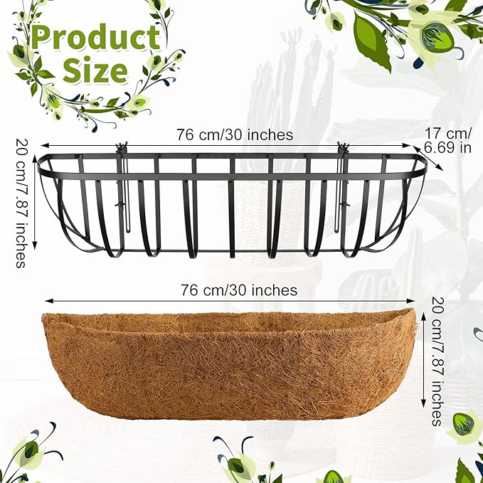 • Quality Material: window boxes horse trough are made of metal and coconut shell; The coconut liner is made of quality natural latex and natural coconut fiber, which has a thick texture and retains the moisture of the roots well; The floral black frame and base are made of sturdy rust resistant metal that won't fall easily; The nice combination of colors and materials can create a beautiful window scenery for you