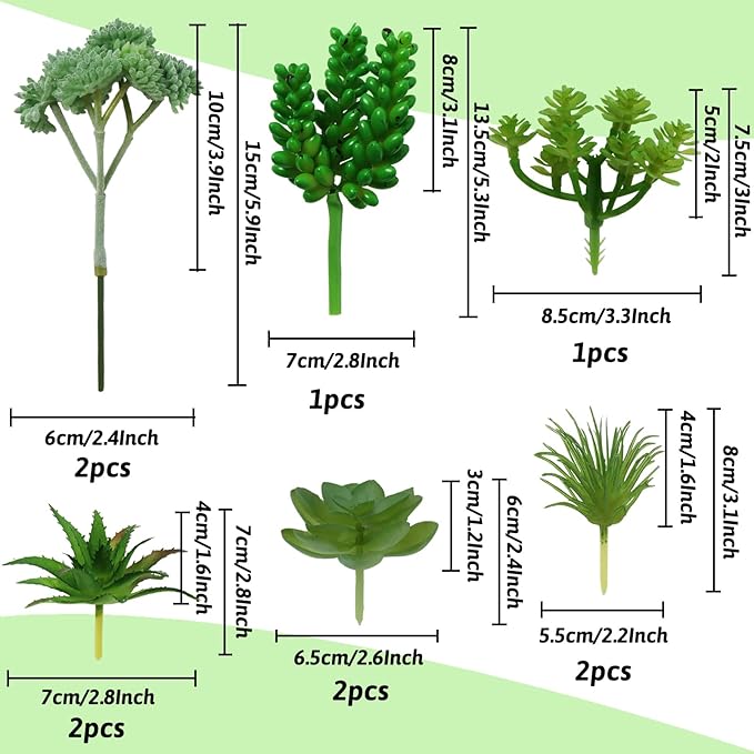 • Package: includes 22pcs different kinds of green Succulents Plants Artificial(excluding pots). They are small but beautiful, please confirm the size before buying.