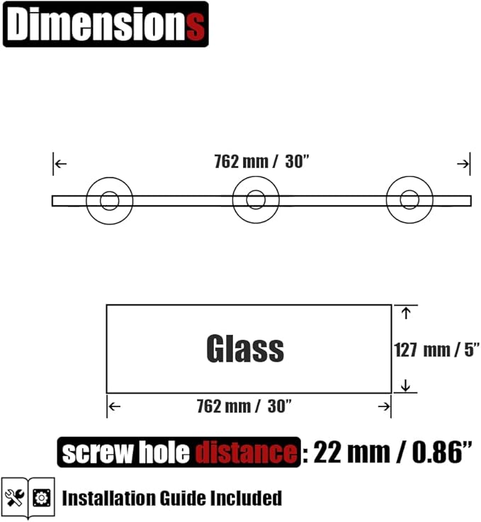 • 【8MM Tempered Glass Shelf】30 x 5 inch glass to keep bath items from toppling. Make your bathroom organized and get extra room.