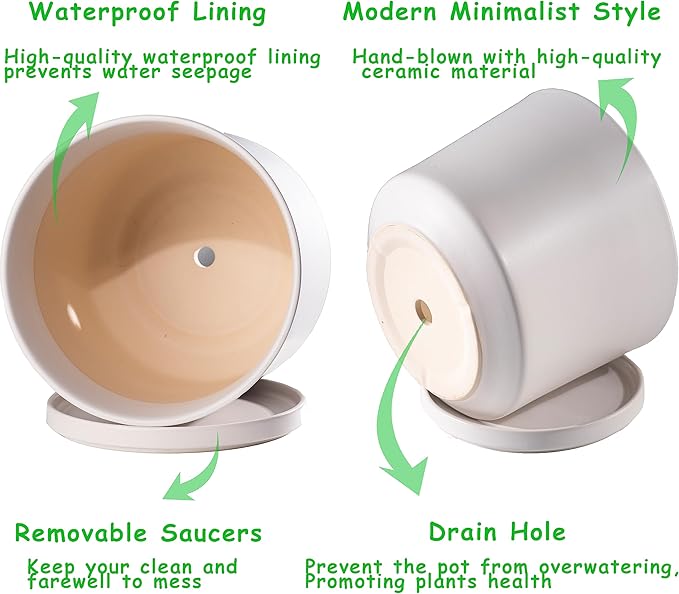 • 【Premium Ceramic Material】 Ekirlin plant pots are stoneware baked at high temperatures, so they can withstand extreme temperatures. Manufactured through appropriate synergy between traditional manual techniques and ergonomics, from the top to the bottom, these flower pots show elegant and natural lines