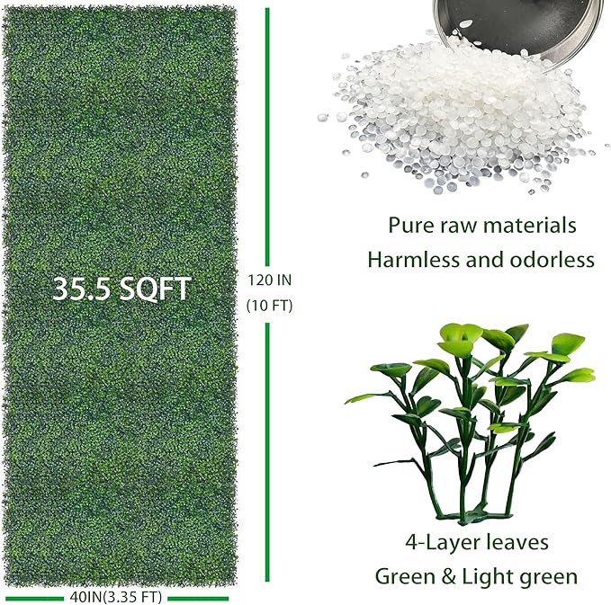 • Our artificial boxwood topiary hedge plants are Sun-proof, weather resistant, low-maintenance, eco-friendly, Will not fade and fall off within 5 years.These greenery panels are made of lightweight yet super-strong high density polyethylene that's soft to the touch.no objectional odor