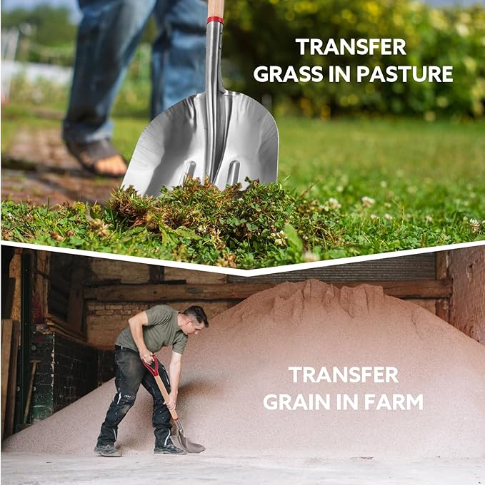 • MATERIAL : The scoop shovel's head is made of quality aluminum, the long handle is made of oak, and the gripper is made of metal and oak