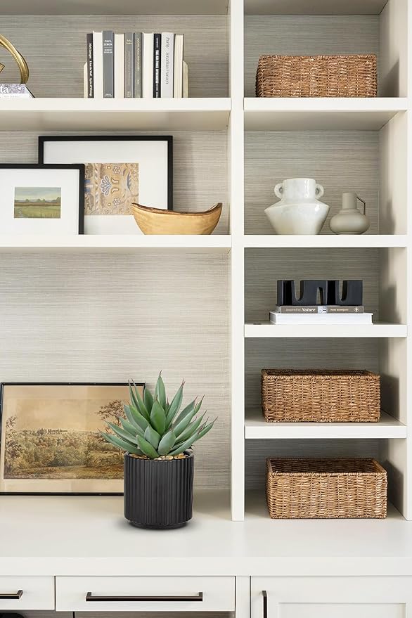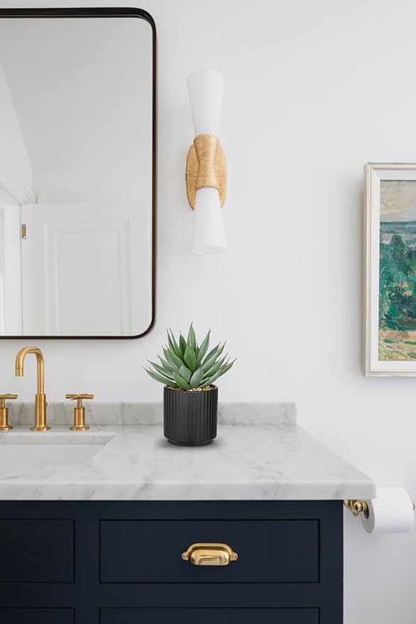 Briful Succulents Plants Artificial for Home Decor, Realistic Potted Fake Agave Plant, Black Ceramic Vase, Cute Aloe Maguey Faux Plant, Shelf Tables Decor, Modern Farmhouse Home Bathroom Decorations