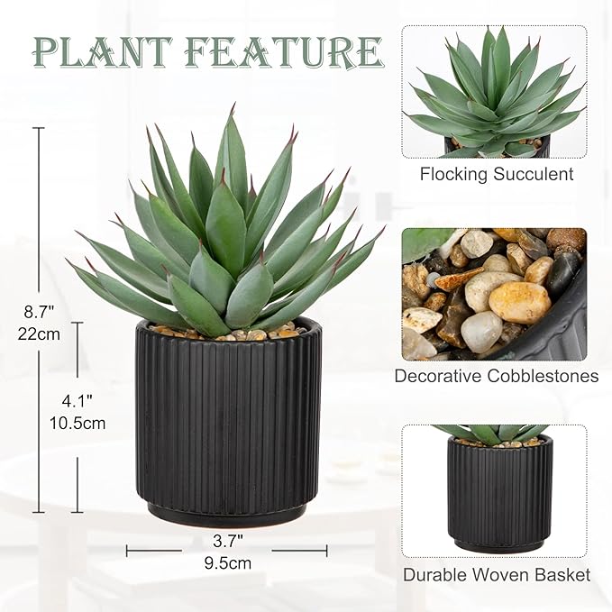 • CUTE AGAVE AND POT SIZE: The black ceramic basin measures 2.75 inches in diameter and 1.97 inches high. The agave range in overall height from 3.35 inches to 6.30 inches. The size is cute and sophisticated.