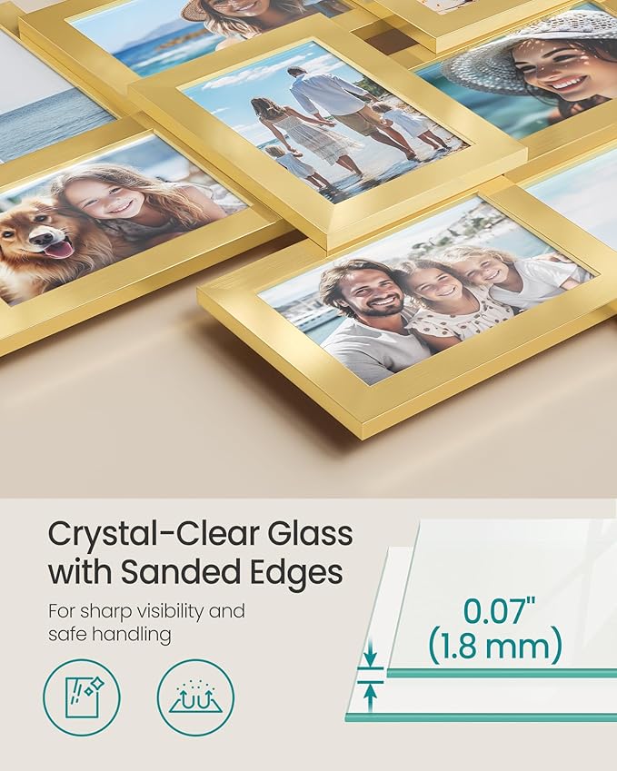 • [MDF Frame and Glass Front] Crafted with a quality MDF frame, these collage picture frames are durable for long-term use; the glass front gives a clear view of pictures and preserves your photos, and the polished edges protect your hands
