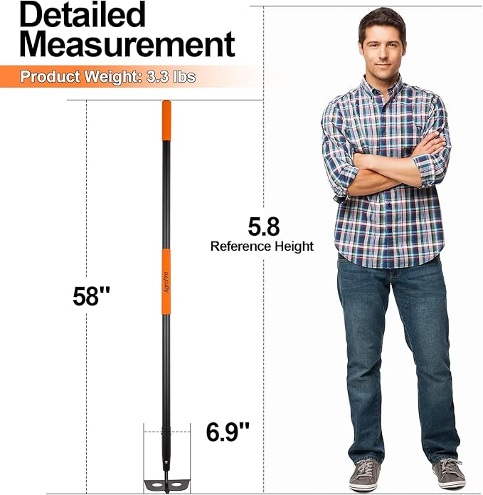 • Reliable Structure: As you know, using cheap garden hoe for weeding is always frustrating because the handles often break. This hoe garden tool features an integrated fiberglass handle that requires no assembly, offering superior structural strength that won’t bend or break.