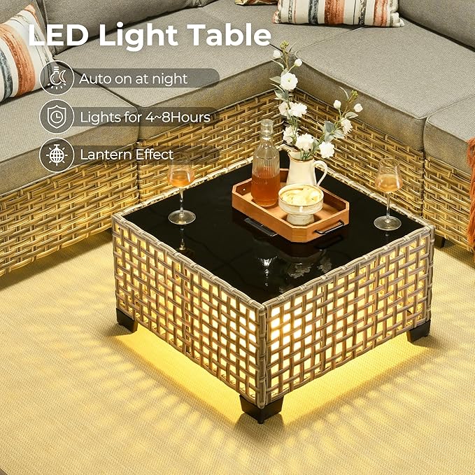 • All Weather & Durable: Selected anti-ageing treated thicken PE wicker rattan for UV resistant, wear resistant and all weatherproof. 3D strengthen and widen design for extended service life,twice service life as others