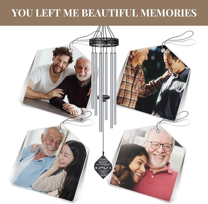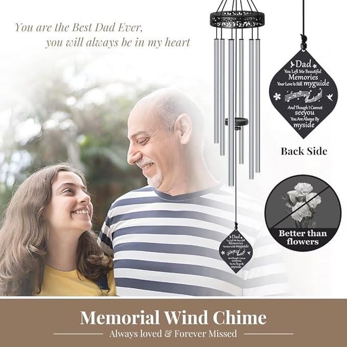 • Sympathy Gifts for the Loss of a dad:A Touching Tribute, In times of loss, we seek ways to express our gratitude and deep emotions. Let this memorial wind chimes serve as a heartfelt reminder of your father’s enduring presence. With each gentle breeze, this memorial wind chime will fill the air with beautiful melodies, spreading the warmth of paternal love far and wide. Whether displayed as a home decoration or cherished keepsake, it symbolizes the profound bond you shared with your dad.