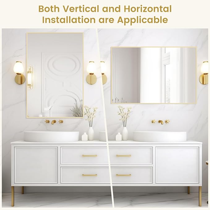 • Easy to Install - Comes with installation accessories, making it easy to hang the mirror for bathroom on the wall. Whether you are a DIY enthusiast or a beginner, you can quickly complete the installation and enjoy a beautiful home environment.