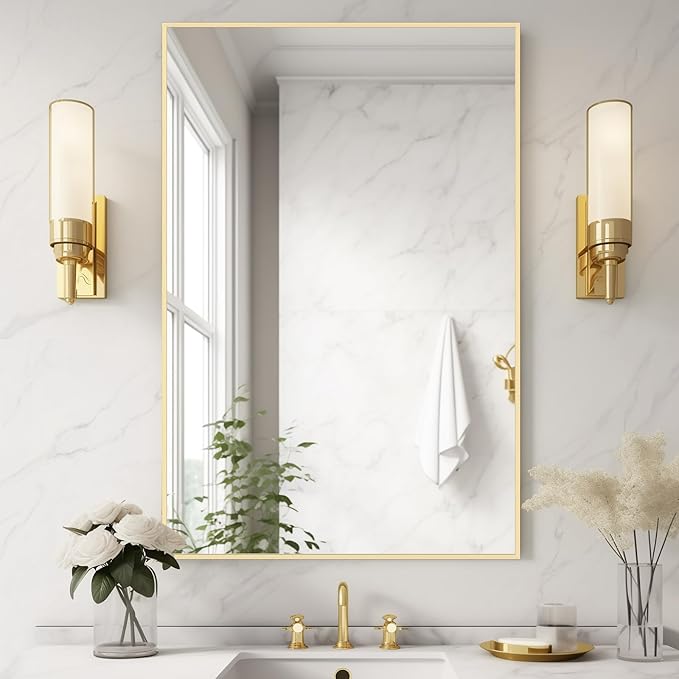 HOMECOOKIN Gold Mirror for Bathroom 24 x 36 Inch Rectangular Bathroom Mirror with Metal Frame, Bathroom Mirror for Over Sink, Hangs Horizontal or Vertical