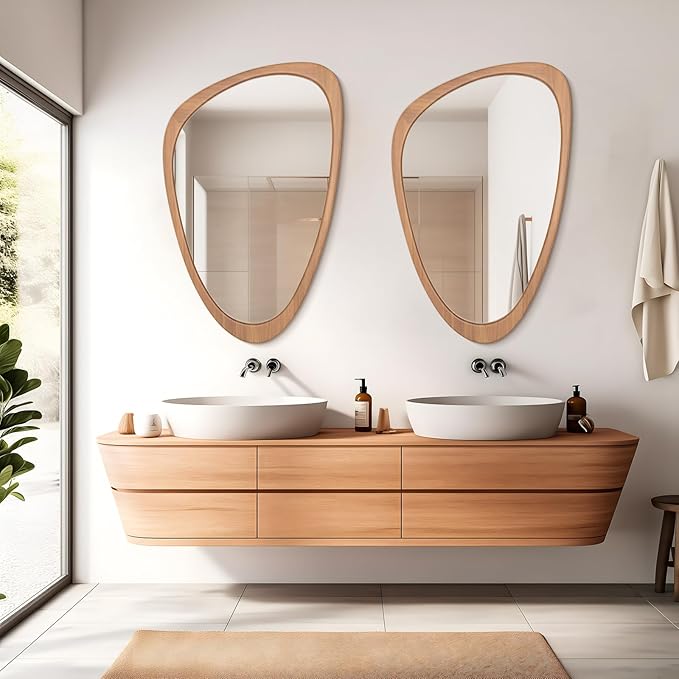 WallBeyond Asymmetrical Mirror, Irregular Wall Mirror, Wall Mirrors Decorative for Bedroom Living Room Entryway Hall, Wood Mirror for mid Century Modern Decor 36" H x 23" W