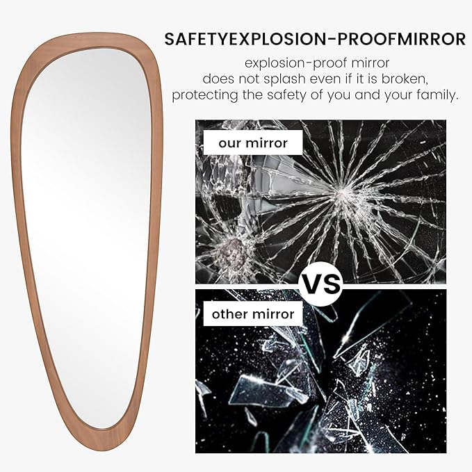 • EXCELLENT QUALITY: Using high quality solid wood frame, HD reflection effect. The asymmetrical wall mirror made with a explosion-proof materials, such as accident damage, the mirror glass will not be scattered around, to ensure your safety!