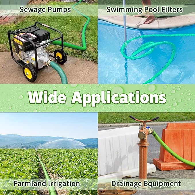 • 【Application】Works as pool drain hose, pool pump hose, filter waste hose, also works for agricultural water discharge, irrigation, landscaping and submersible pumping.