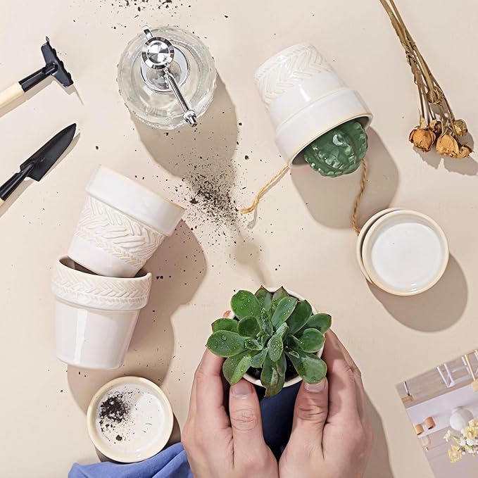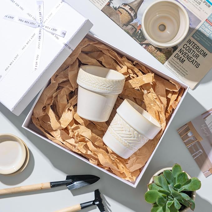 • EXCELLENT CRAFTSMANSHIP: Our ceramic succulent pots are crafted from high-quality materials and fired at high temperatures for durability. Thick and sturdy, they resist cracking over time. Each pot is carefully packaged with protective foam to ensure safe delivery, so you can enjoy your new planter worry-free.