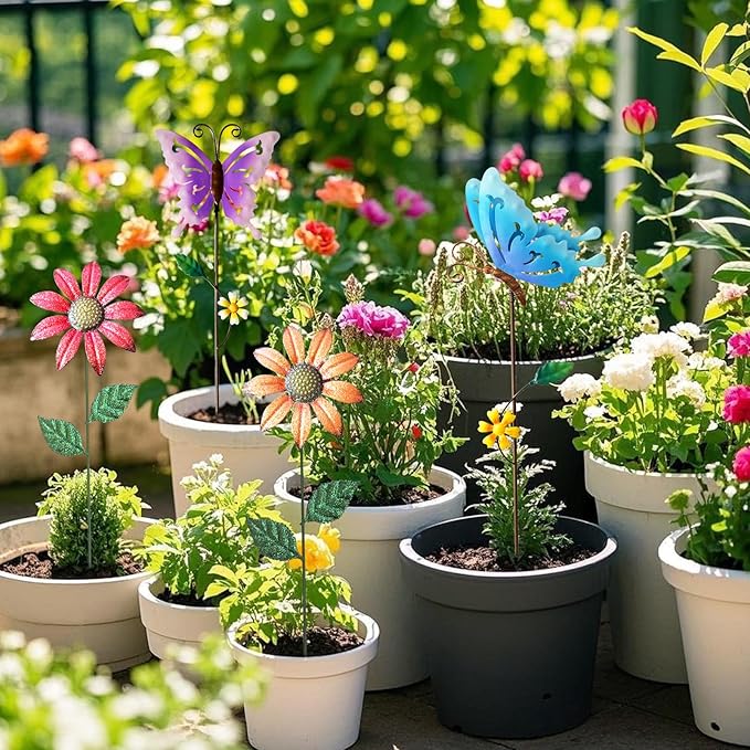 • 【Great Garden Decoration】:This adorable set of Garden Stakes will add the perfect charm to your planters, garden or landscape beds. Guests in your garden won't be able to miss these beautiful and unique metal flower garden decorative!They also make great gifts.