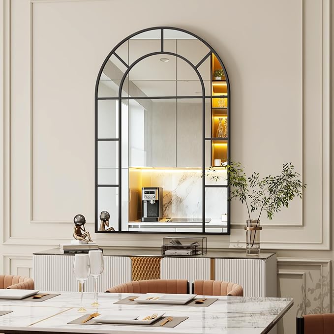 Bathroom Mirror, 24x36 Arched Wall Mirrors, Black Wall-Mounted Mirrors, Bathroom Vanity Mirror for Over Sink, Bathroom, Living Room, Bedroom, Entryway