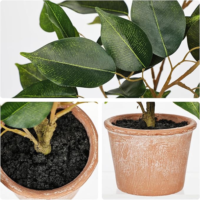 • Realistic Natural Look: Lush silk ficus leaves with rich textures and subtle veining bring a lifelike presence to your decor. Perfect for styling on a shelf, coffee table, or entryway. A must-have for artificial plant decor or faux greenery lovers