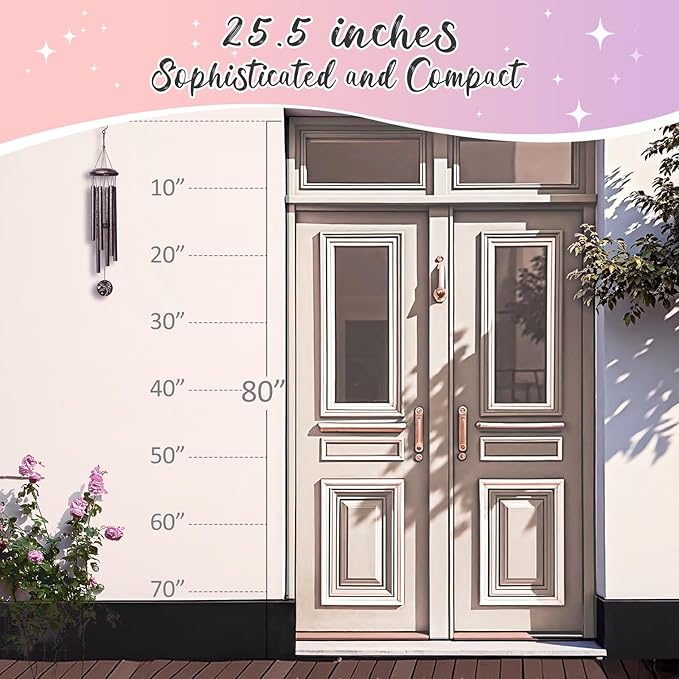 • High-quality Craftsmanship:25-inch classic wind chime with 6 anodized aluminum tubes and UV-resistant ropes,Each tube are wrapped and protected. Waterproof and built to withstand outside all weather conditions.