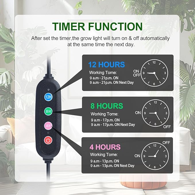 • Military-Grade Auto-Scheduler (4/8/12H Cycles)---Smart timer runs like atomic-clock precision—set morning mist or sunset cycles for 7 days. Vacation-proof your plants: System auto-reboots after outages.