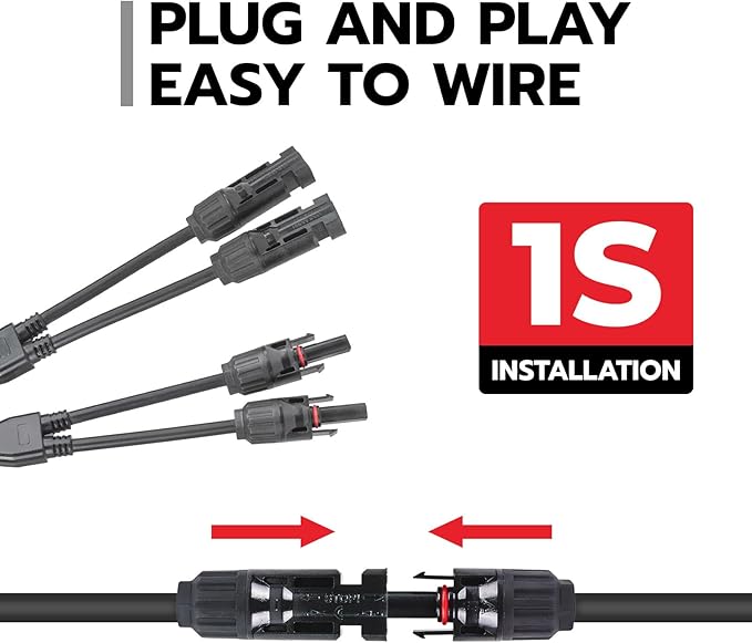 • SOLAR CONNECTORS: Includes 1 pair of M/FF and F/MM connectors, allowing 4 solar panels to be connected in parallel for higher output