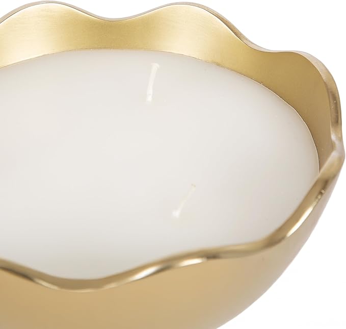Kate and Laurel Alessia Scalloped Round Metal Candle Bowl, 8 Inch Diameter, Gold, Modern Three-Wick Unscented Candle with Decorative Bowl for Living Room Decor