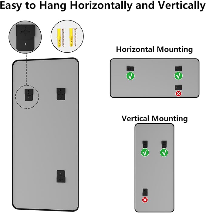 • No-Fuss Installation – Ready in Minutes: Comes with all hooks/hardware for vertical or horizontal hanging—no extra tools needed. Install this bathroom sink mirror before your coffee gets cold! Perfect for renters, DIYers, or anyone who hates complicated setups. Transform your space in minutes, whether above the sink, in the entry, or living room.