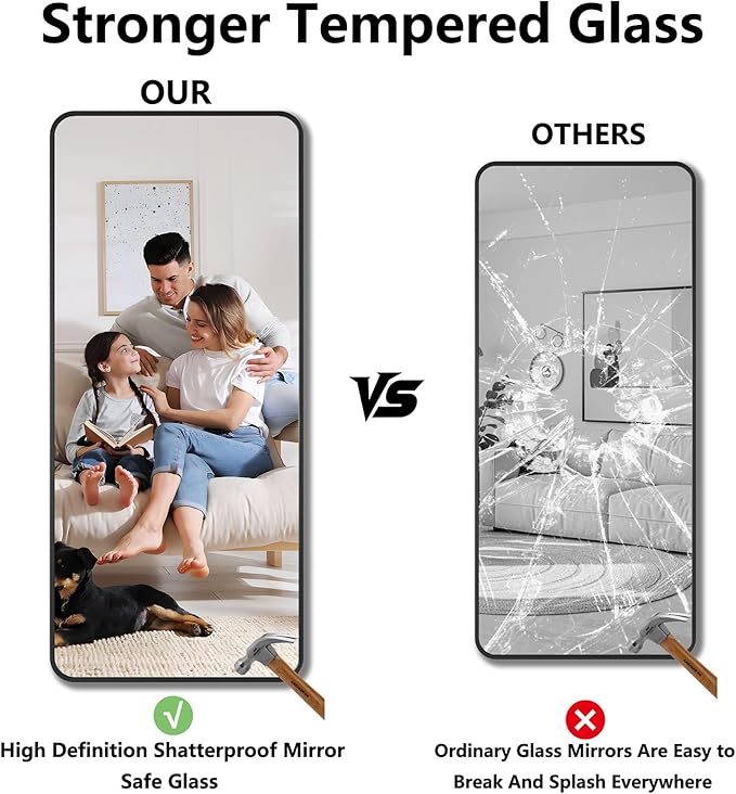 • Unmatched Quality, Start to Finish: For years, we’ve obsessed over every detail—from sturdy frames to crystal-clear glass—to deliver mirrors that stand the test of time. We use premium materials and meticulous packaging, so your mirror arrives in perfect condition and stays flawless for years. No shortcuts, no compromises: just mirrors built for durability, style, and total satisfaction.