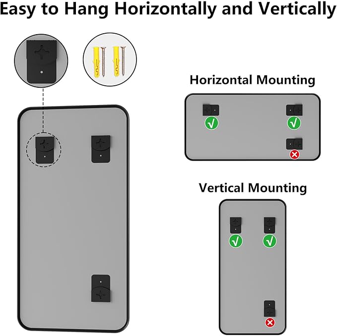 • No-Fuss Installation – Ready in Minutes: Comes with all hooks/hardware for vertical or horizontal hanging—no extra tools needed. Install this bathroom sink mirror before your coffee gets cold! Perfect for renters, DIYers, or anyone who hates complicated setups. Transform your space in minutes, whether above the sink, in the entry, or living room.