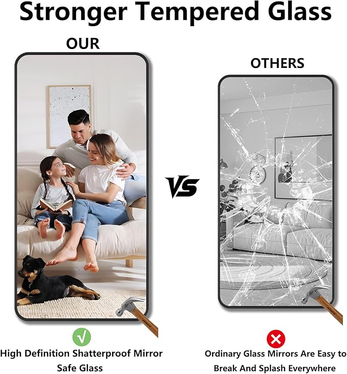 • Unmatched Quality, Start to Finish: For years, we’ve obsessed over every detail—from sturdy frames to crystal-clear glass—to deliver mirrors that stand the test of time. We use premium materials and meticulous packaging, so your mirror arrives in perfect condition and stays flawless for years. No shortcuts, no compromises: just mirrors built for durability, style, and total satisfaction.