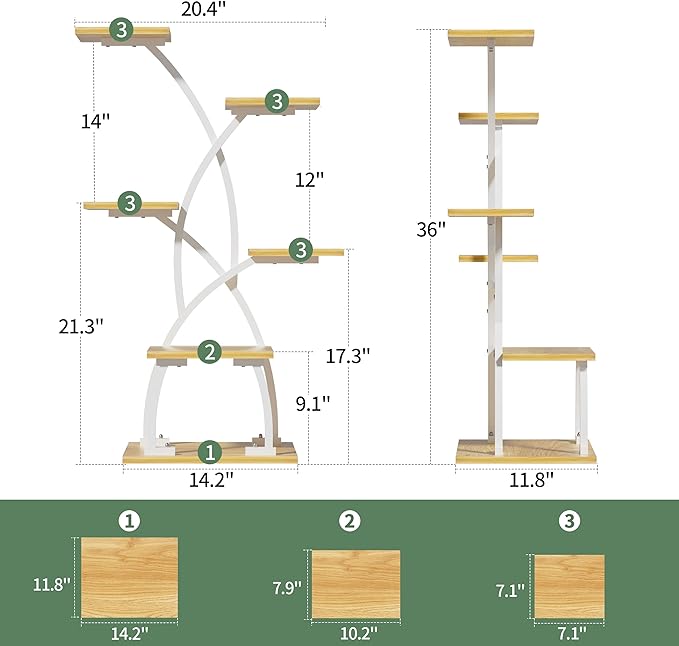 • 6 Tiered Plant Stand: This tiered plant stand with 6 tiers of pot stands provides you with enough space to accommodate a variety of different sizes of pots or plants. With dimensions of 20.4"W x 12"D x 36"H, this corner plant stand is suitable for placing in every room or corner without taking up too much space. The vertical plant shelf can save you more space. Bring nature indoors with elegance using this plant stand!