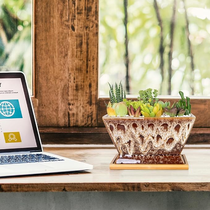 • 【Perfect Size】The package includes a planter pot with drainage in perfect size: 7.1'' *4.1'' * 3.7'' (L*W*H). For any quality problems, please feel free to let us know. Artketty will never disappoint any customer.(PLANTS NOT INCLUDED)