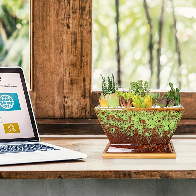 • 【Perfect Size】The package includes a planter pot with drainage in perfect size: 7.1'' *4.1'' * 3.7'' (L*W*H). For any quality problems, please feel free to let us know. Artketty will never disappoint any customer.(PLANTS NOT INCLUDED)