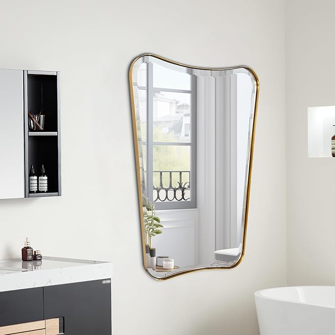 • Suitable Scene: Designed in different sizes as well as different colors, this irregular bathroom mirror is suitable for a variety of decorating styles. This wall mirror is a perfect home decoration for bathroom, fireplace, living room, dining room, vanity and so on