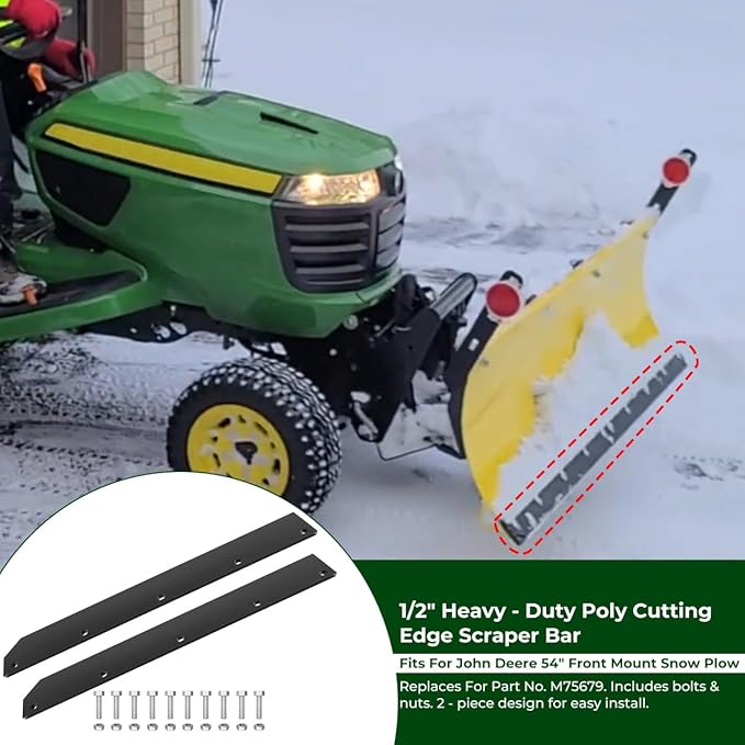 1/2" Poly Cutting Edge Scraper Bar- Replacement for John Deere 54" Front Mount Snow Blade Plow, Replaces for M75679