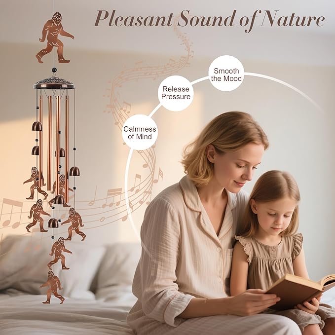 • 【Pleasant Sound】: When the breeze blows over the bigfoot wind chime, the collision of aluminum tubes of varying lengths and bells generates a unique and wonderful melody, creating a soothing and gentle atmosphere. Listening to the music played by nature, you will relax your body and mind in the embrace of nature and feel peaceful and happy. Perfect for hanging in courtyards, gardens, windows, terraces, porches or trees, adding poetry and picturesque to your environment
