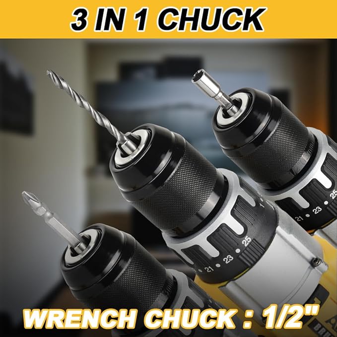 • Torque Control with 25+3 Settings: Featuring 25+3 torque adjustment settings and a speed range of 0-2100 RPM, this drill helps you avoid overdriving or damaging screws. It guarantees accurate control for various tasks, from simple household jobs to professional projects