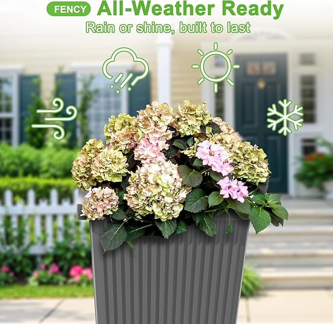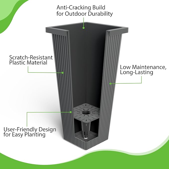 • Built to Endure All Weather Conditions: Crafted from premium, weather-resistant plastic, these tall planters for outdoor plants are designed to resist cracking, fading, and damage from the sun, rain, and snow. Perfect for any season, these large planters for outdoor plants ensure long-lasting durability, making them an excellent choice for outdoor and indoor gardening alike.